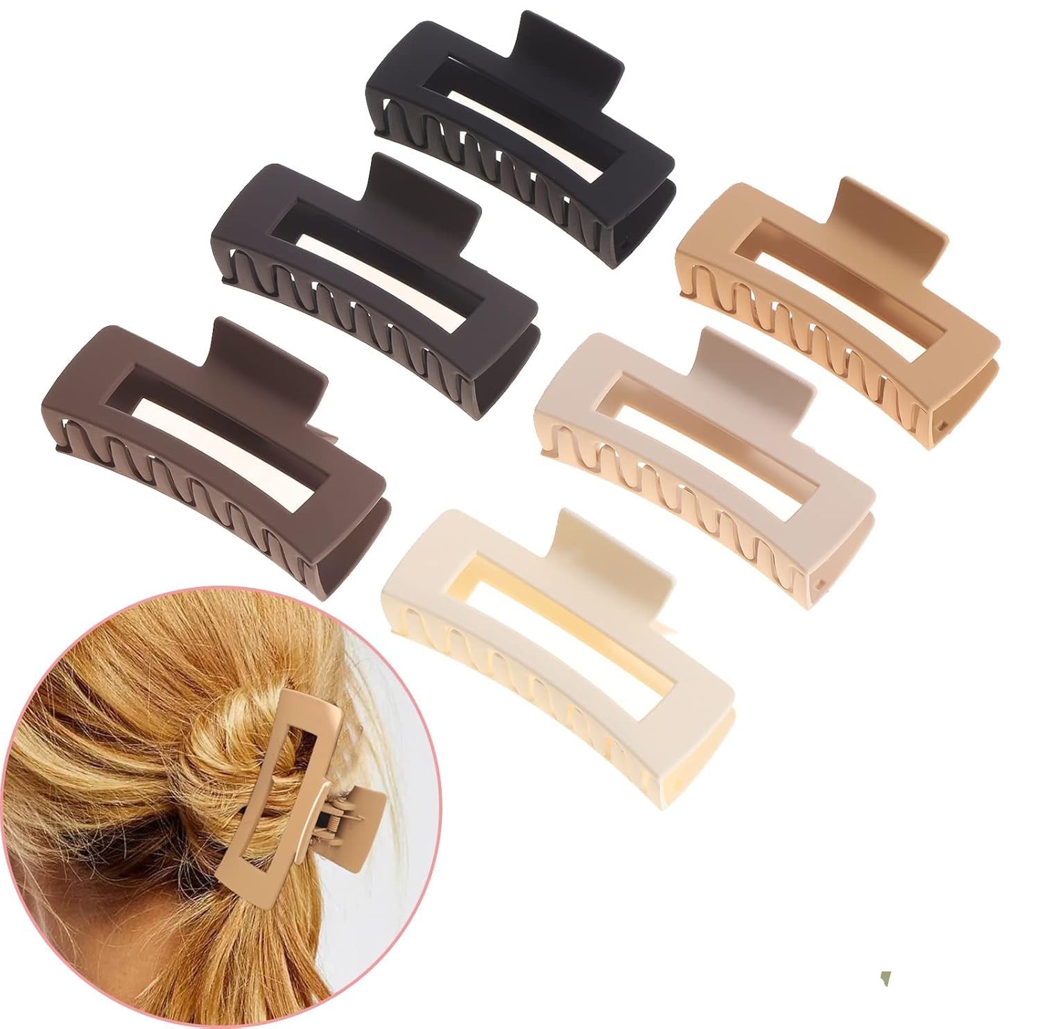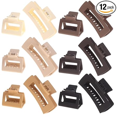 This set includes 12 matte-finish hair claw clips in mixed sizes, designed to suit different hairstyles and hair volumes. The combination of small and large clips makes this set versatile for everyday styling and quick hair arrangements.